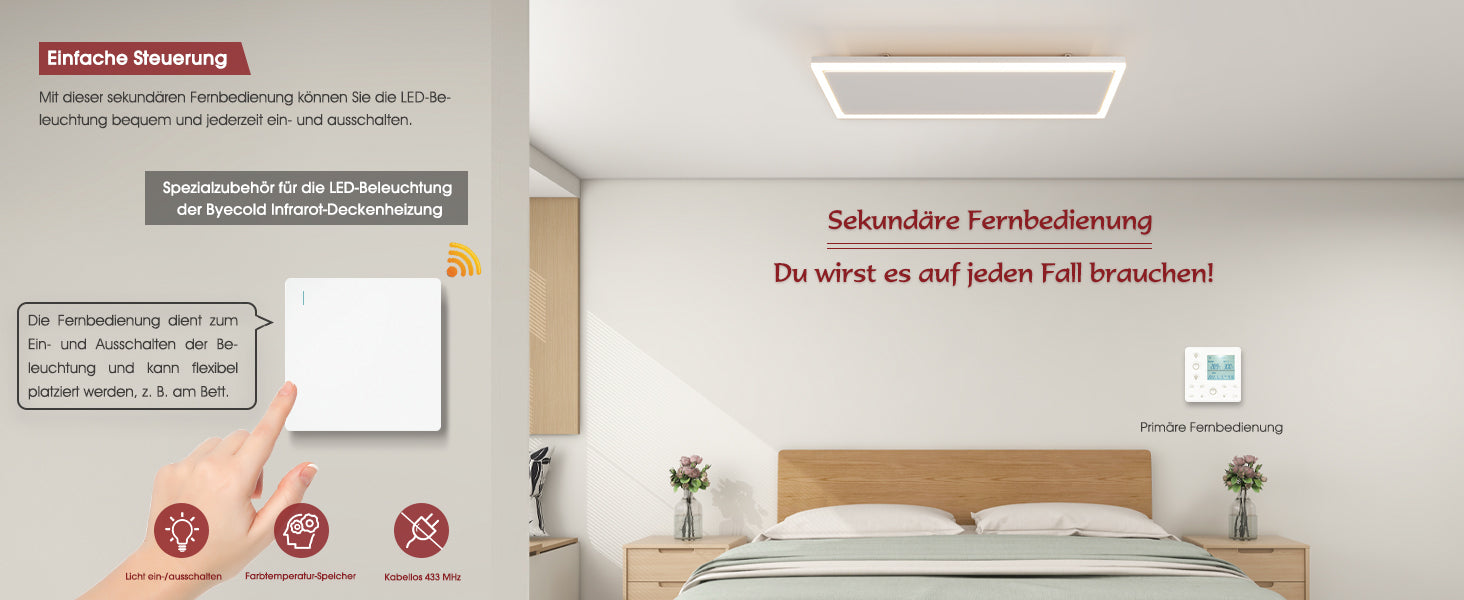 Infrarot Deckenheizung mit Thermostat (Optional LED Beleuchtung)