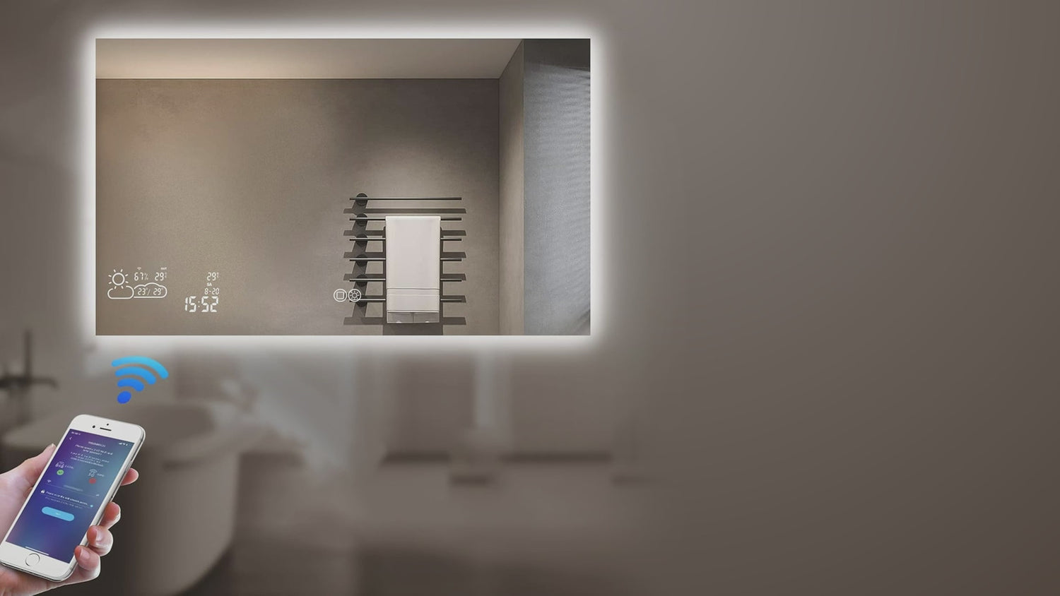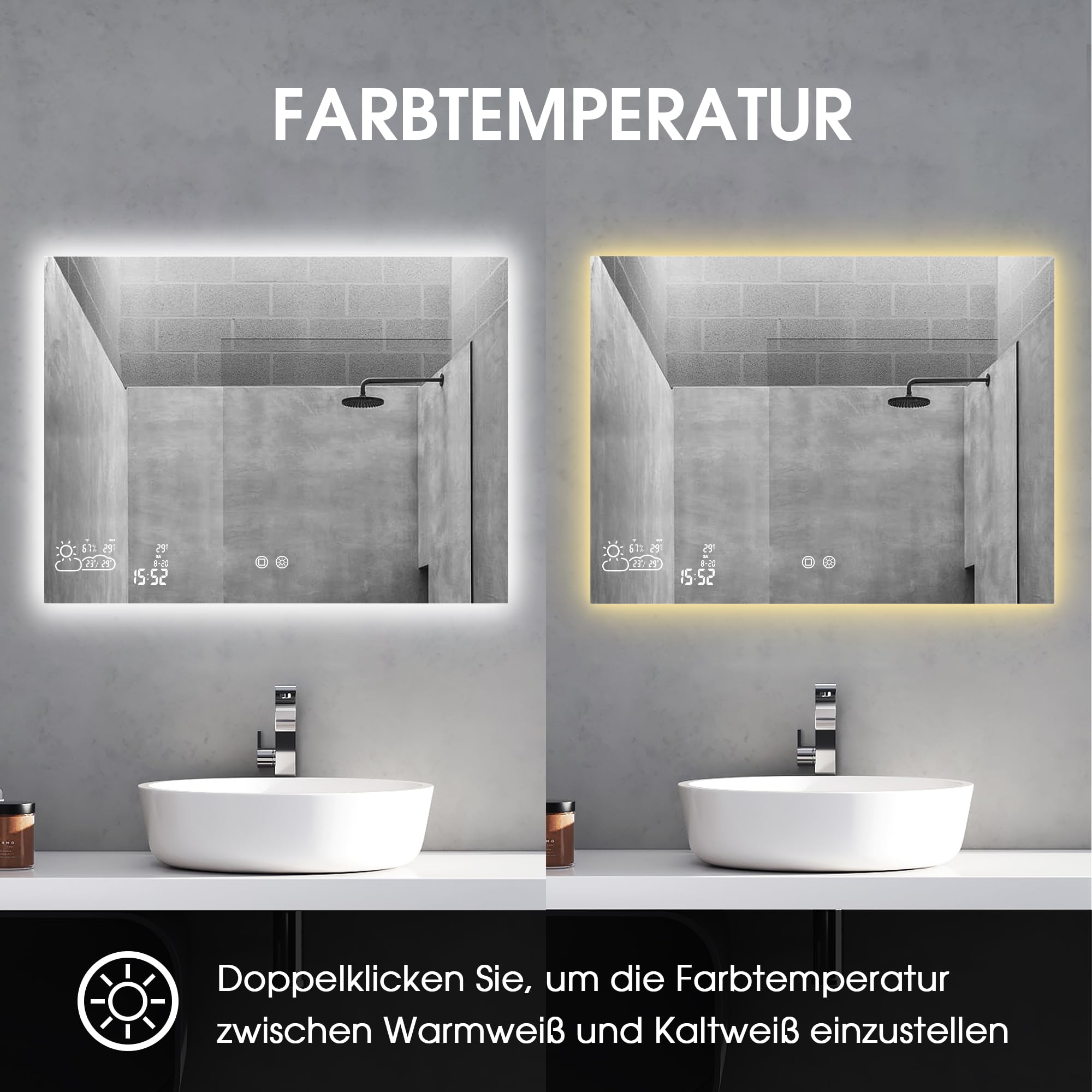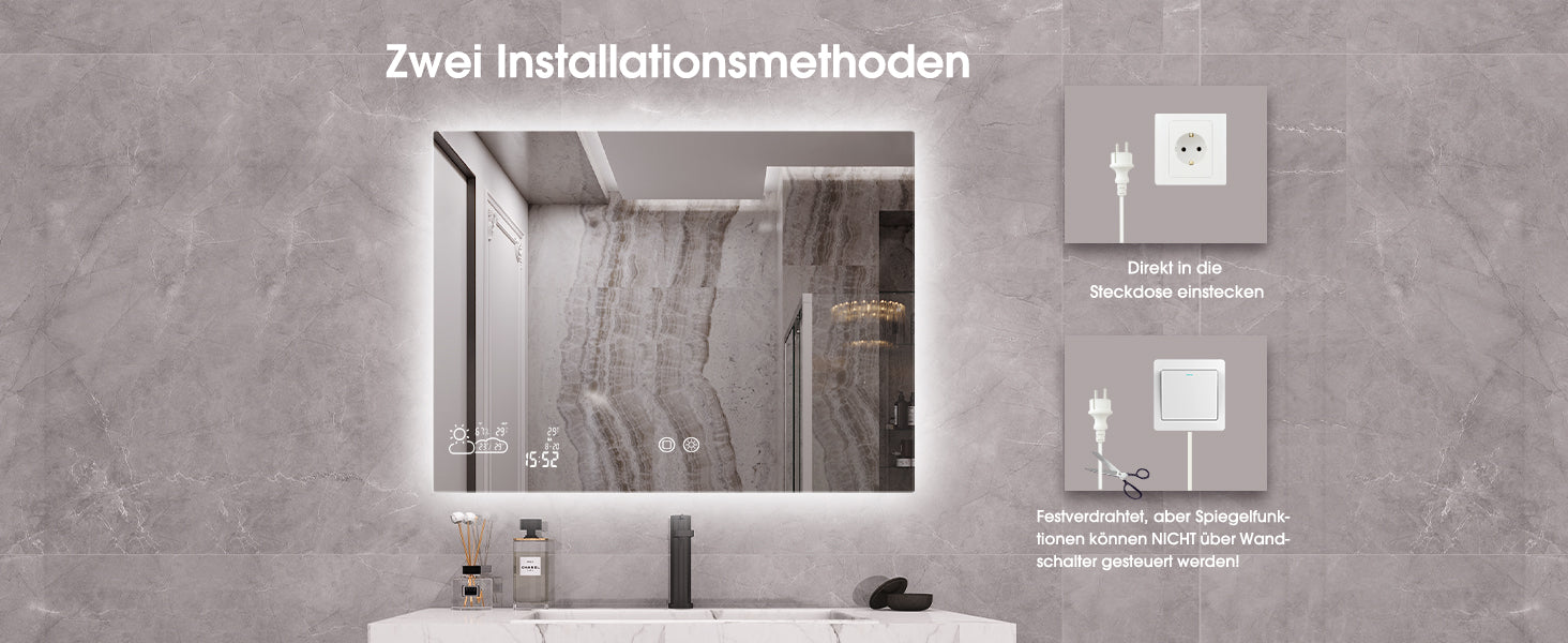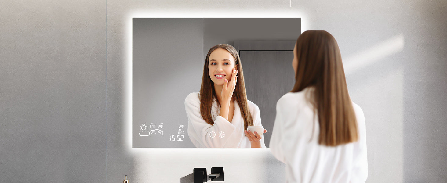 📶Verbinden Sie den Spiegel mit Ihrem 2,4 GHz WLAN und erhalten Sie die Wettervorhersage in Echtzeit direkt im Bad