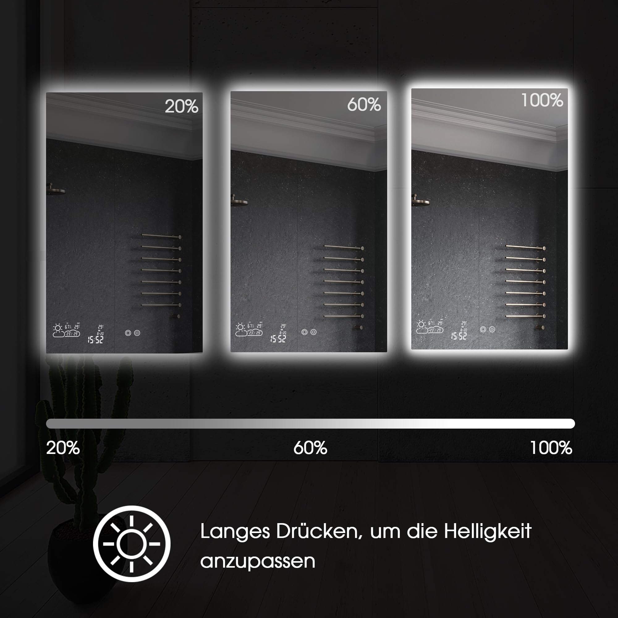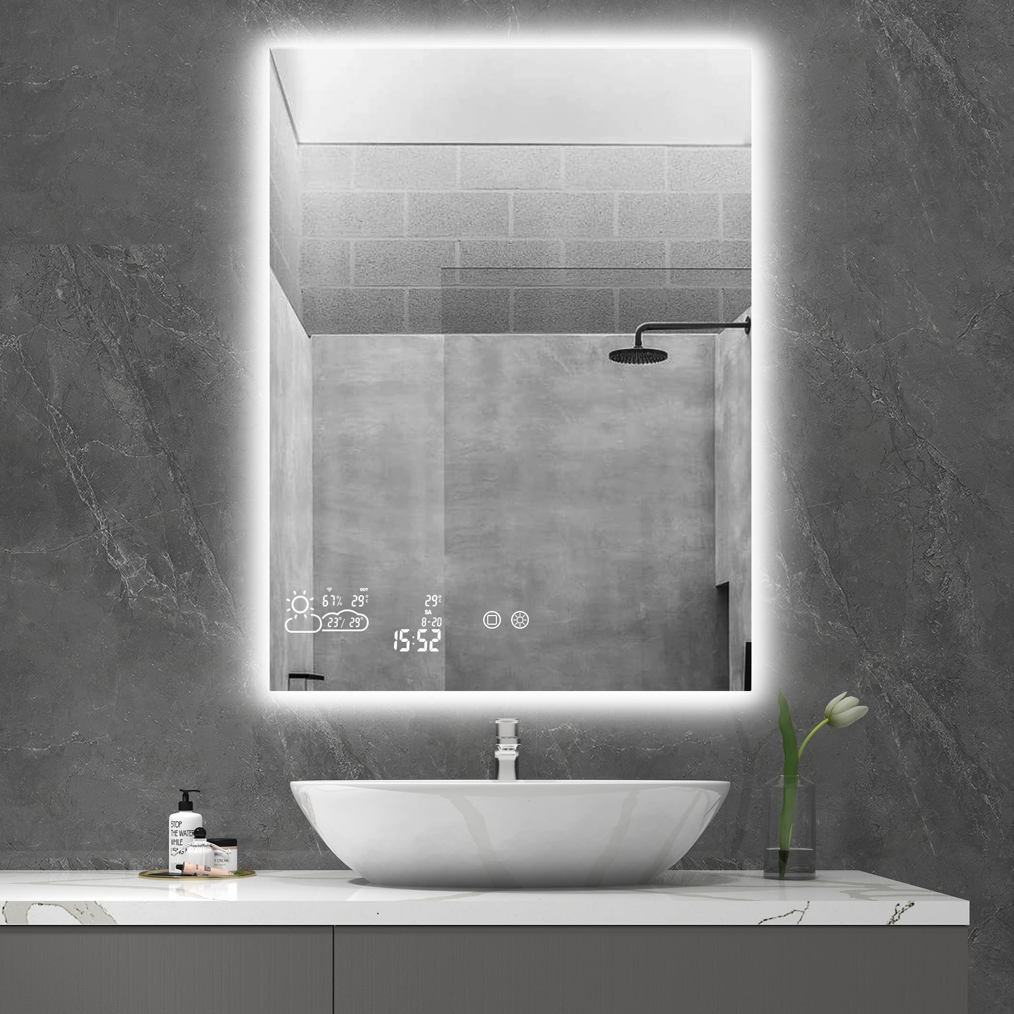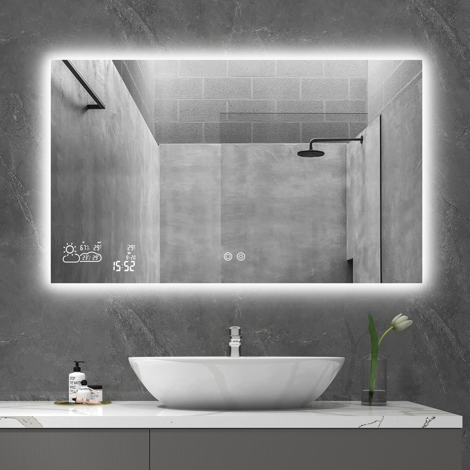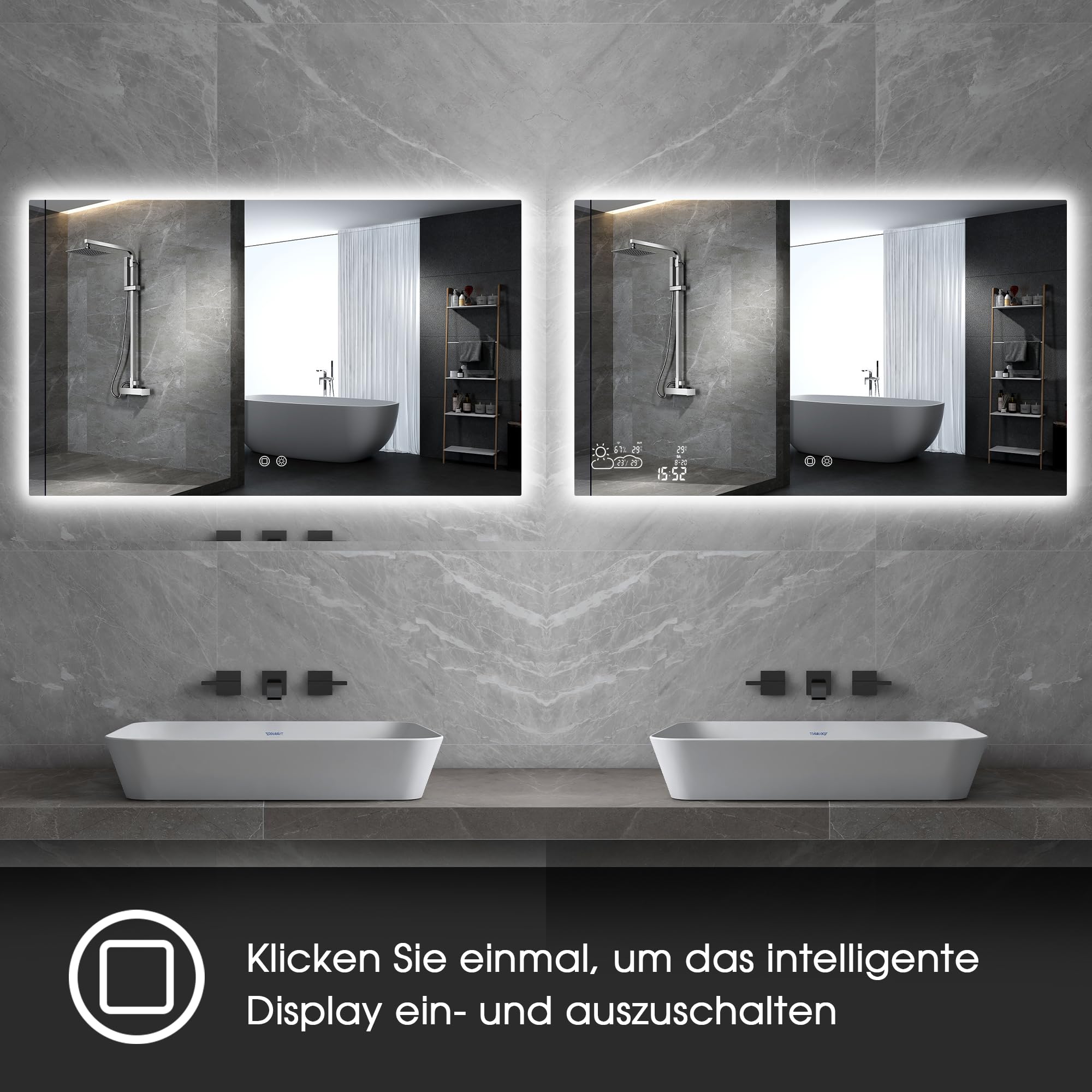 📶Verbinden Sie den Spiegel mit Ihrem 2,4 GHz WLAN und erhalten Sie die Wettervorhersage in Echtzeit direkt im Bad