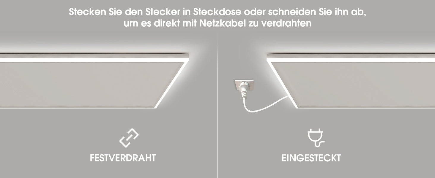 Ja, sowohl Festanschluss als auch Steckdose sind möglich. (Dies beeinträchtigt die Garantie nicht.) Die Steuerung erfolgt jedoch weiterhin über das Thermostat.
