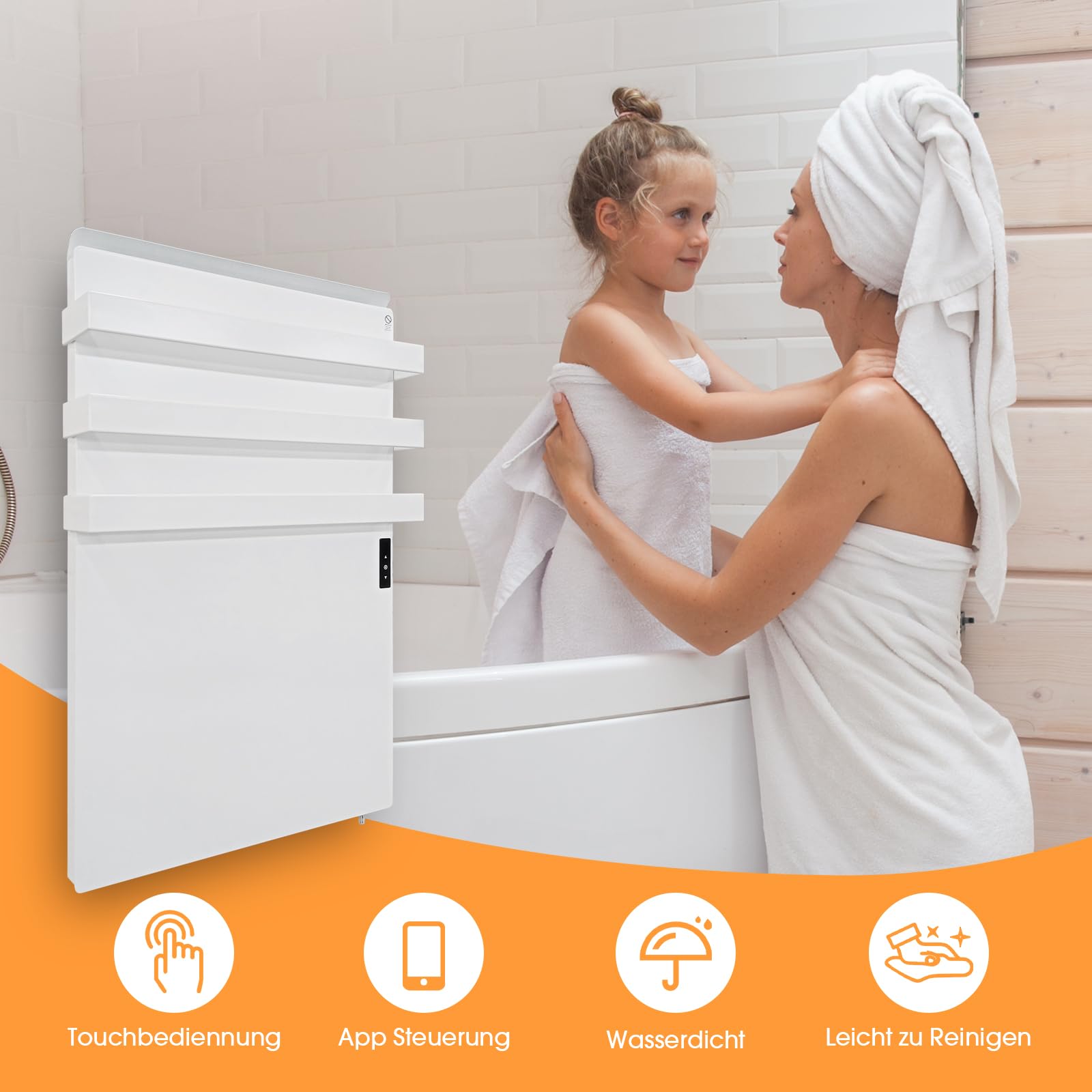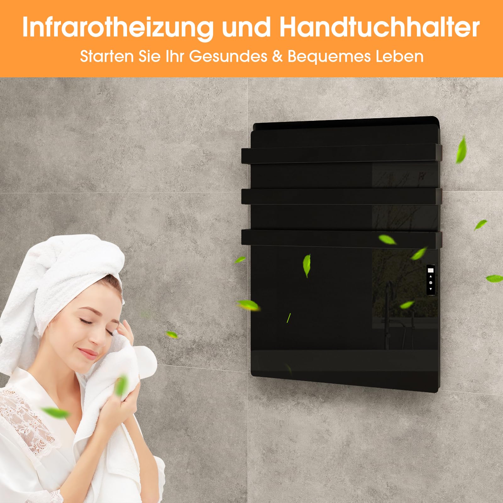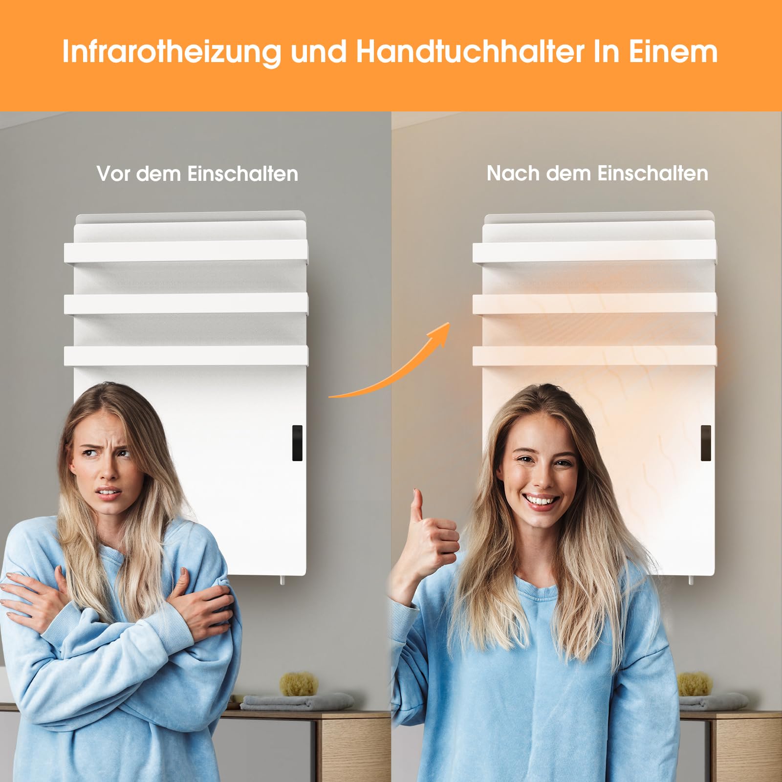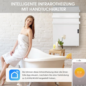 Infrarot Wandheizung mit Handtuchhalter, App Thermostat und Touchscreen Badezimmer Handtuchheizung