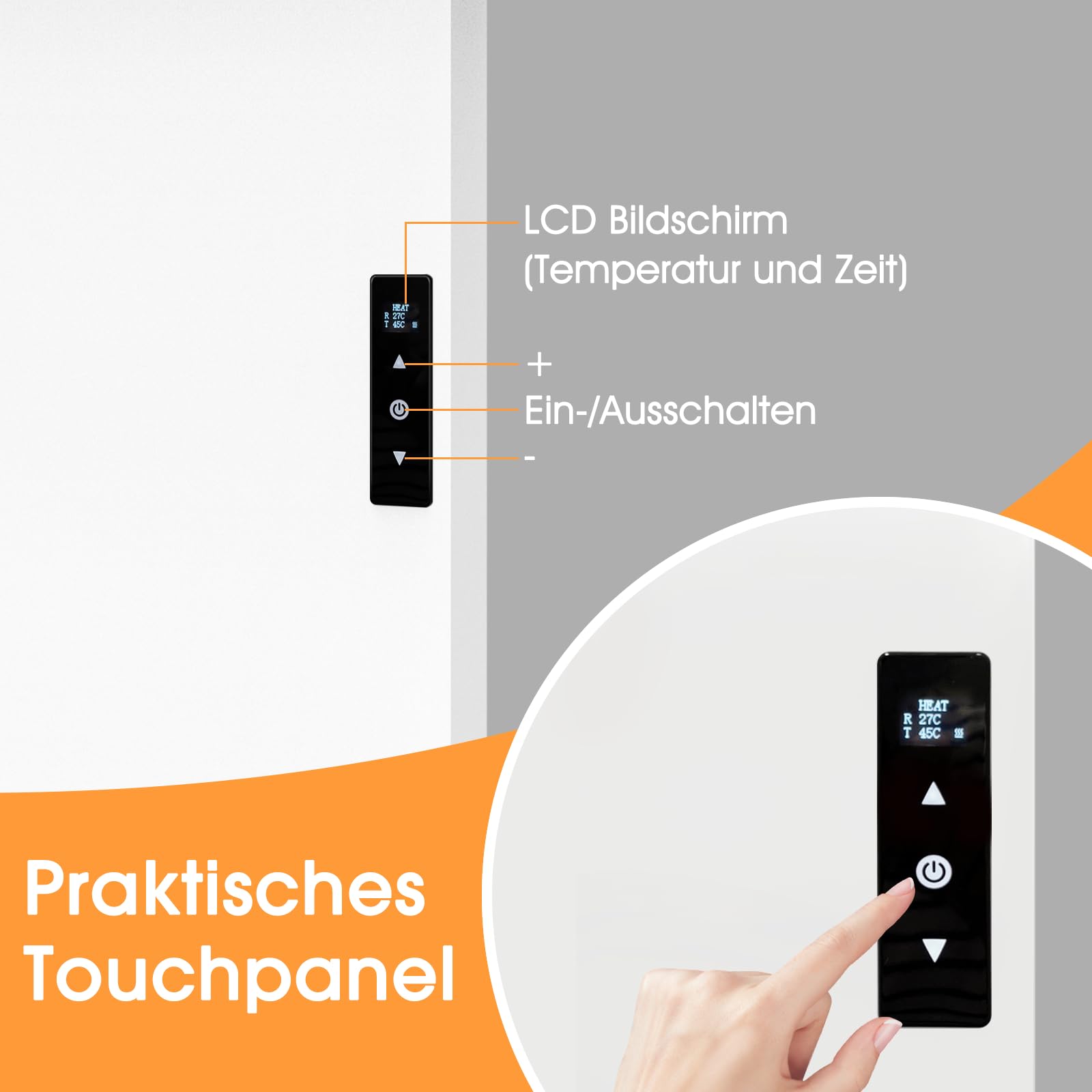Infrarot Wandheizung mit Handtuchhalter, App Thermostat und Touchscree