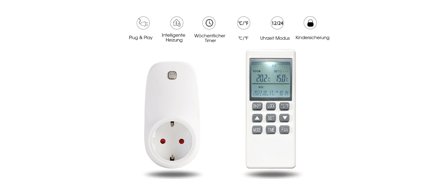Steckdosenthermostat mit Fernbedienung für Infrarotheizung & Heizgeräte